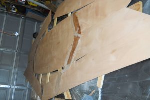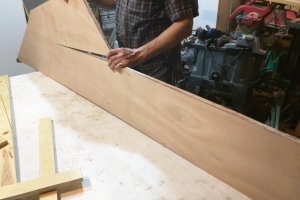The build was simple to loft and cut. The bow panels were stacked and cut as a pair for accuracy. All four sides were matched before proceeding. We did learn one lesson early—should have started glassing from the outside first. Required two full flips to recover that error.