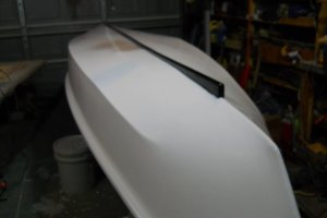 We cracked a forward hull panel while wiring up the bow stem. That panel is now laminated on both sides with glass tape and epoxy. Solid fix.