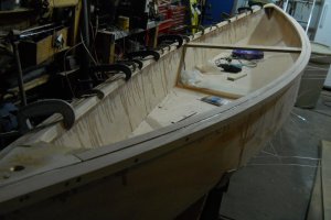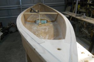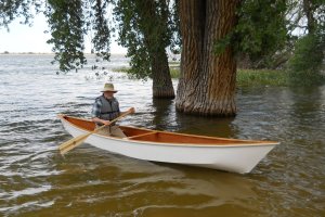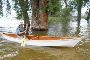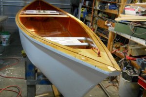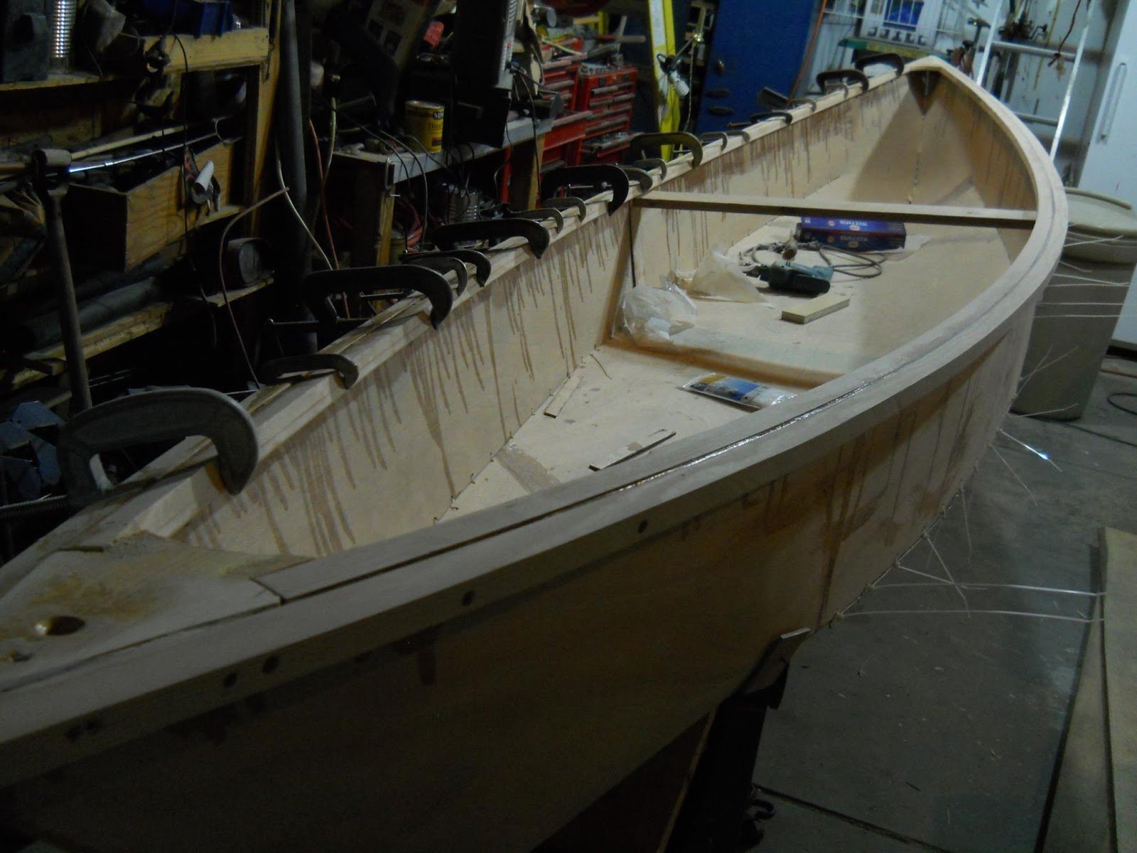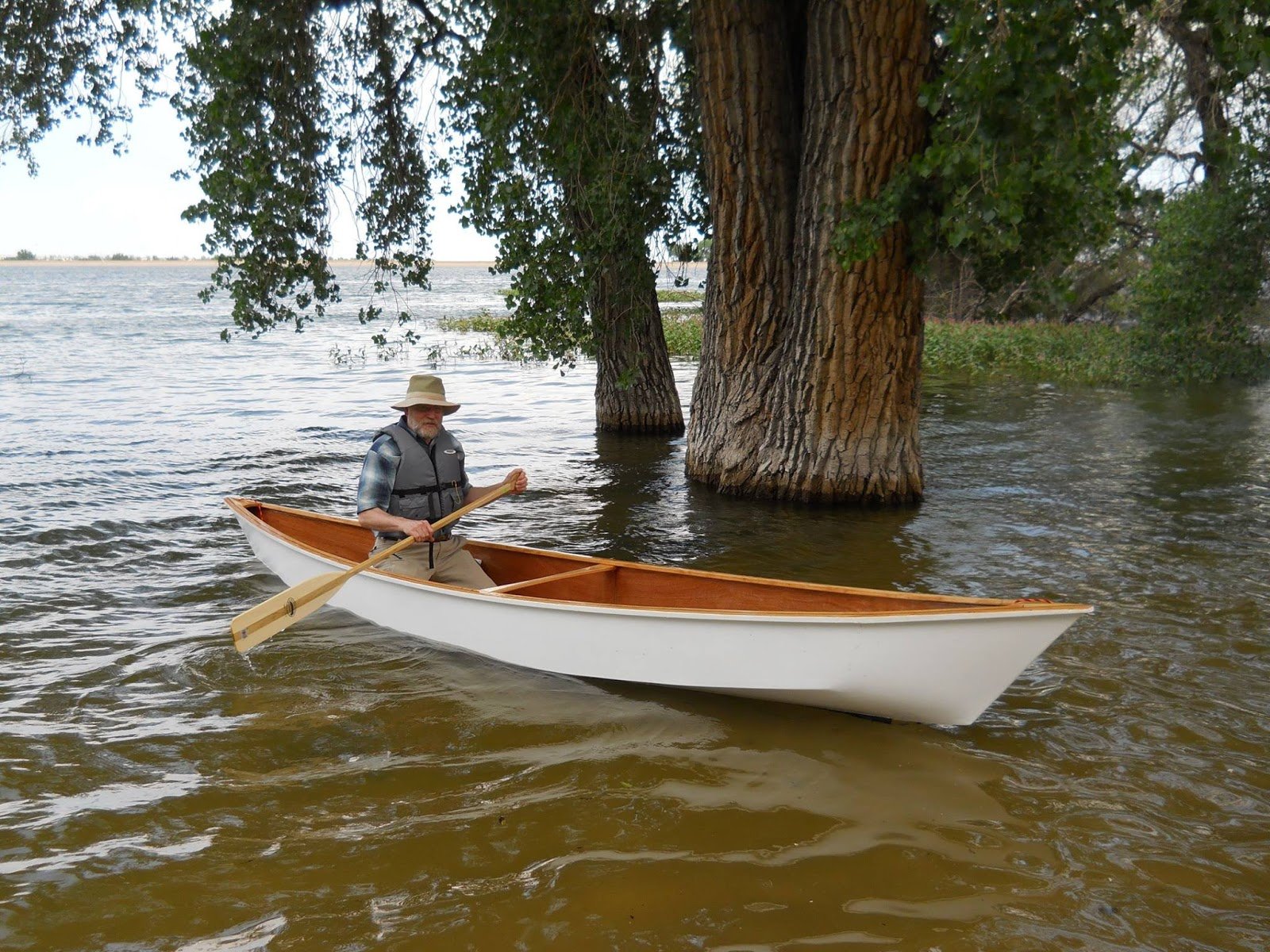 Lightweight. Stable. Tracks well. Keel underneath to make windy conditions easy to keep a straight track. Perfect for lakes, light rivers, and easy car-topping. No fancy jigs or lofting table required. We built it in a garage over a few weeks, part-time.